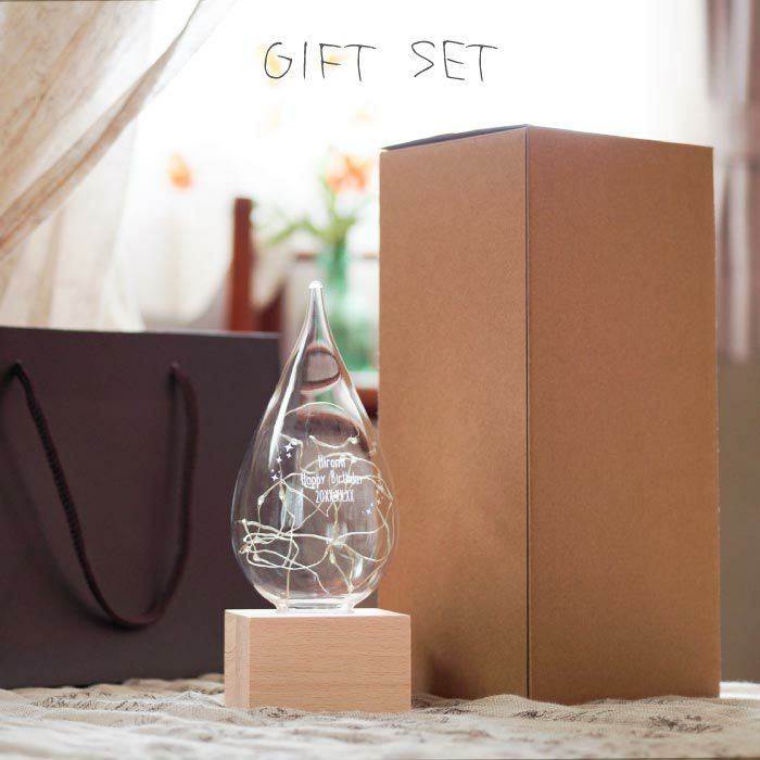 他の画像を見る ストームグラス ¥ 6,980 税込 19世紀ヨーロッパで航海時の気象予測に用いられた歴史を持つストームグラス。気温や気圧などの環境変化により、内部の結晶が幻想的に変化する観賞用インテリアです。 天然木の台座とガラスの組み合わせが上品な印象を与え、オフィスの受付や会議室、ロビーなどにも最適です。 企業ロゴや社名、記念日などの名入れ彫刻が可能で、創立記念や周年祝い、表彰記念品としてご活用いただけます。 熨斗・ラッピング・手提げ袋に対応し、短納期の納品によるスピーディな対応も可能です。 詳細を見る お気に入りに登録する