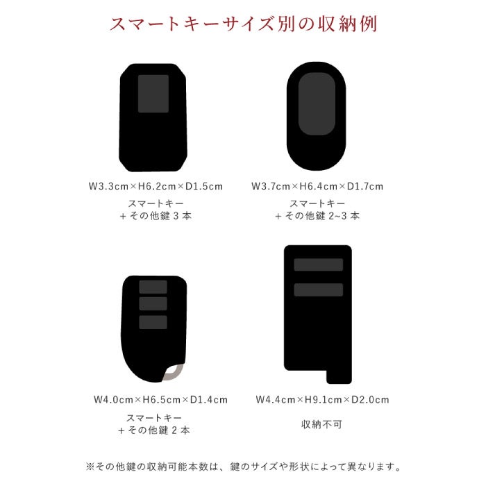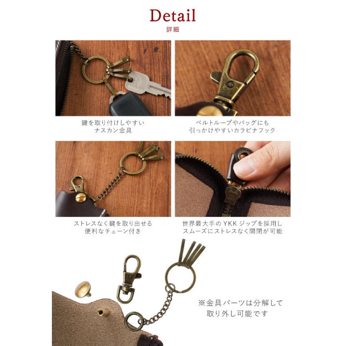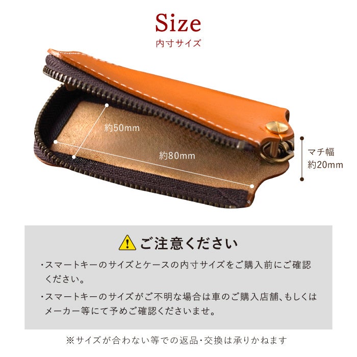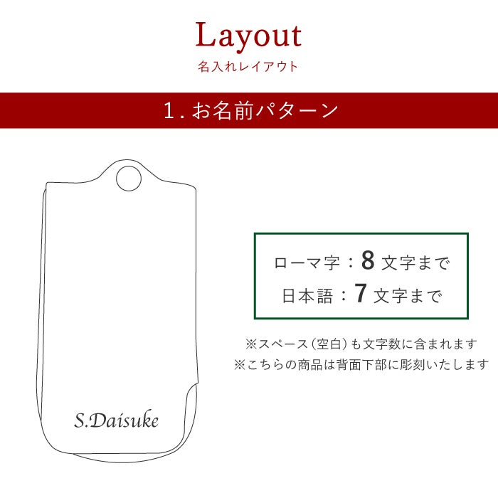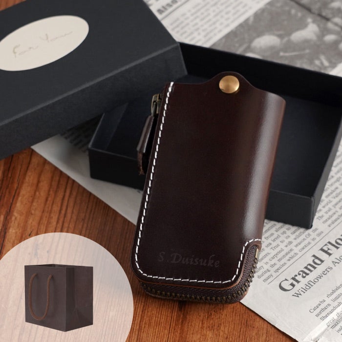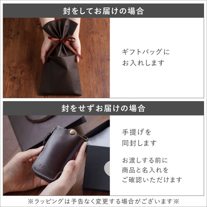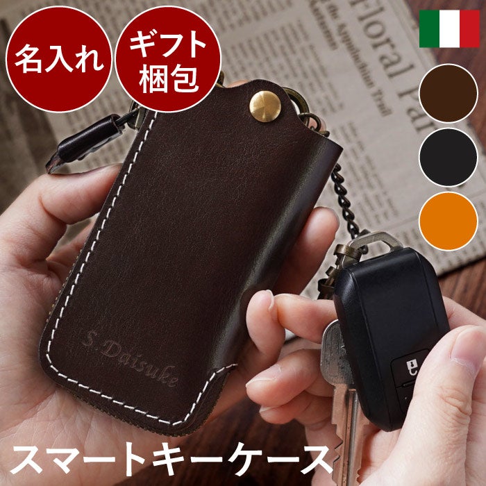 他の画像を見る イタリアンレザー スマートキーケース ¥ 6,980 税込 コンパクトな設計ながら、車のスマートキーや自宅の鍵をまとめて収納可能。ポケットやバッグからの出し入れもスムーズで、持つ人の品格をさりげなく引き立てます。 鍵の着脱がしやすいナスカン金具に加え、ベルトループやバッグに取り付け可能なカラビナフックを搭載。さらに、鍵を素早く取り出せるチェーン付きで、ストレスなくご使用いただけます。 素材には、イタリアの職人によって丁寧に仕上げられたイタリアンレザーを採用。使い込むほどに深みを増す経年変化をお楽しみいただけます。 ■名入れ対応について 本製品は名入れ対応が可能です。控えめで上品な刻印により、特別感のあるオリジナルギフトとしてご利用いただけます。誕生日や記念日、納車祝いをはじめ、各種贈答シーンに適しています。 ■主な利用シーン ・誕生日、父の日、母の日、敬老の日などのギフト ・昇進・昇格、永年勤続などのビジネスシーンでの贈答品 ・退職祝い、記念品 ・還暦・古希・喜寿・米寿などの長寿祝い 幅広い年代の方(40代〜80代の男女)への贈り物としてご好評いただいております。 ■商品仕様 ・素材:牛革(イタリアンレザー)/金具:真鍮 ・仕様:チェーン付きキーホルダー、4連フック、カラビナフック ・内寸サイズ:約 横50mm × 縦80mm × マチ20mm ・重量:約64g ・原産国:中国 ■名入れ仕様 ・ローマ字:8文字まで ・日本語:7文字まで ※スペースを含みます ■注意事項 ・天然素材のため、キズやシミ、シワなど個体差がございます。革本来の風合いとしてお楽しみください。 ・入荷時期により色味が若干異なる場合がございます。 詳細を見る お気に入りに登録する