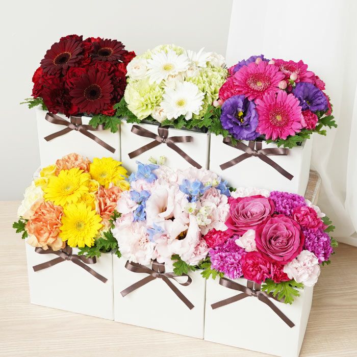 他の画像を見る キューブフラワーボックス ¥ 4,980 税込 贈答用として洗練された印象を持つ「キューブボックスフラワー」は、生花を立体的にアレンジし、上質なキューブ型ボックスに収めた華やかなギフト商品です。 選べる6種のカラーバリエーションで、贈る相手のイメージに合わせたご提案が可能。 専用ボックス・リボン・栄養剤付きで、開封時の驚きと喜びを演出します。 コンパクトながら存在感があり、オフィスの受付や応接室の装飾にも最適。 開店祝いや昇進・栄転祝い、取引先への季節のご挨拶など、法人ギフトとしてもご活用いただけます。 詳細を見る お気に入りに登録する