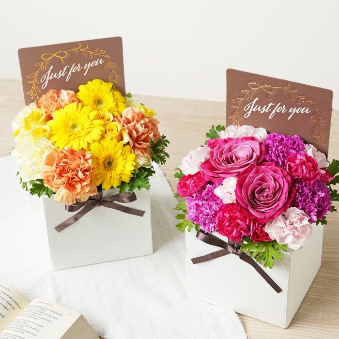 他の画像を見る キューブフラワーボックス ¥ 4,980 税込 贈答用として洗練された印象を持つ「キューブボックスフラワー」は、生花を立体的にアレンジし、上質なキューブ型ボックスに収めた華やかなギフト商品です。 選べる6種のカラーバリエーションで、贈る相手のイメージに合わせたご提案が可能。 専用ボックス・リボン・栄養剤付きで、開封時の驚きと喜びを演出します。 コンパクトながら存在感があり、オフィスの受付や応接室の装飾にも最適。 開店祝いや昇進・栄転祝い、取引先への季節のご挨拶など、法人ギフトとしてもご活用いただけます。 詳細を見る お気に入りに登録する
