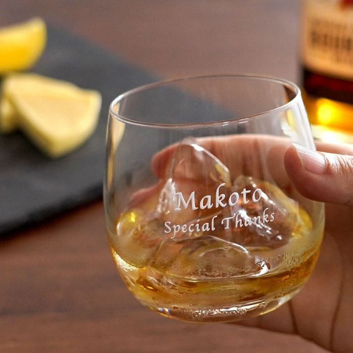 他の画像を見る 男のロックグラス ¥ 4,980 税込 丸みを帯びたフォルムが柔らかな印象を与える、ドイツ製ロックグラス。 透明度と強度に優れたトリタンクリスタル素材を使用し、有名ホテルでも採用される信頼の品質を誇ります。 容量は330ccと日常使いに最適で、ウィスキーや焼酎のお湯割りなど幅広い用途に対応。 さらに、食洗機対応で業務用としても扱いやすく、耐久性にも優れています。 法人名の名入れ加工が可能なため、周年記念、永年勤続表彰、退職記念、昇進祝いなど、ビジネスシーンにおける贈答品としても好適。 熨斗・ラッピング・手提げ袋にも対応しており、記念品やノベルティとしてもご利用いただけます。 洗っても消えない彫刻名入れで、世界にひとつだけの特別なギフトをご提供します。 詳細を見る お気に入りに登録する