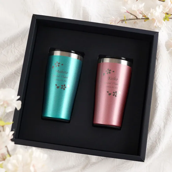 真空断熱ステンレスカラータンブラー450ml桜ペアセット