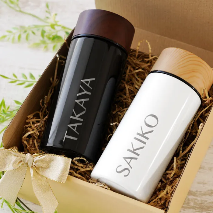 木目調 ステンレス ボトル 300ml ペア ブラック×ホワイト