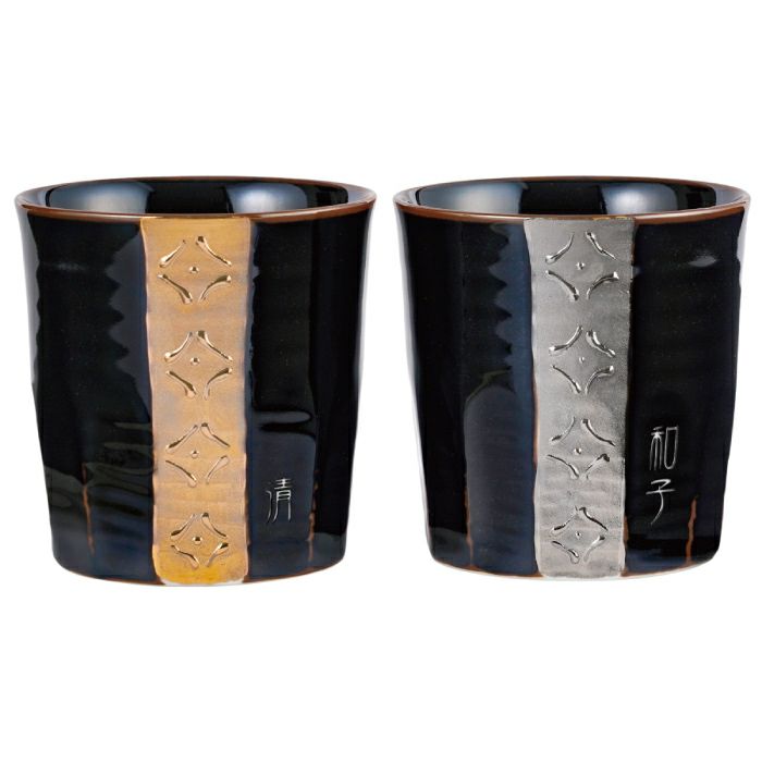 金と銀の上品なラインが印象的なペアのロックカップです。