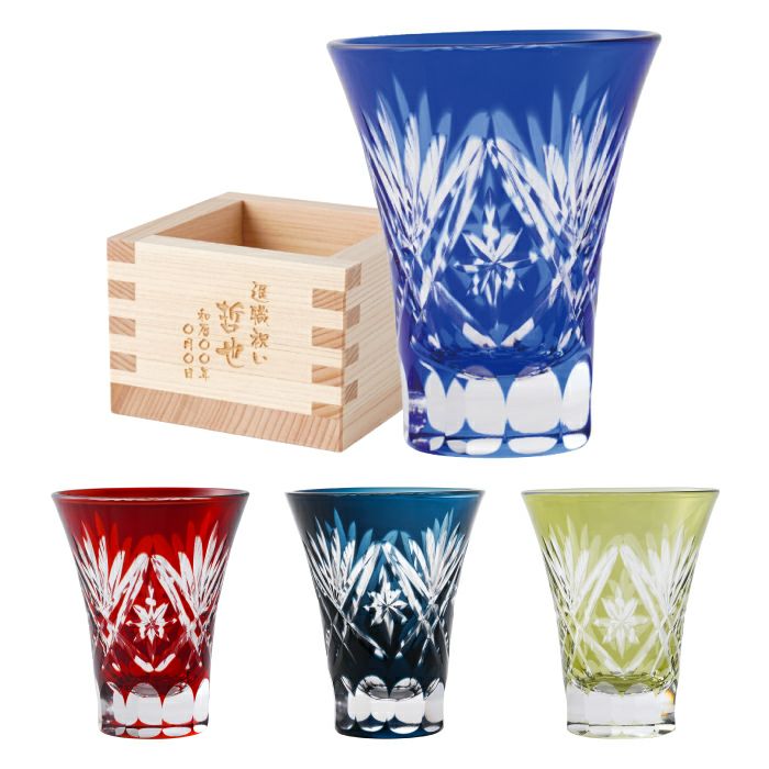贈答や記念品として最適な一口切子グラスと枡のこぼれ酒セットは、日本の伝統美を感じられる逸品です。