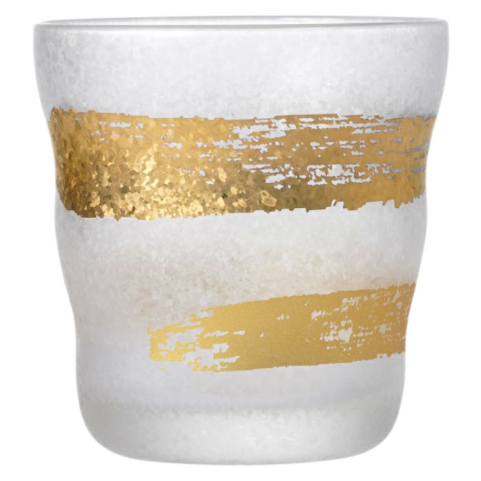 力強く描かれた金一文字が印象的な、日本製のロックグラスです。