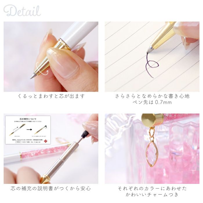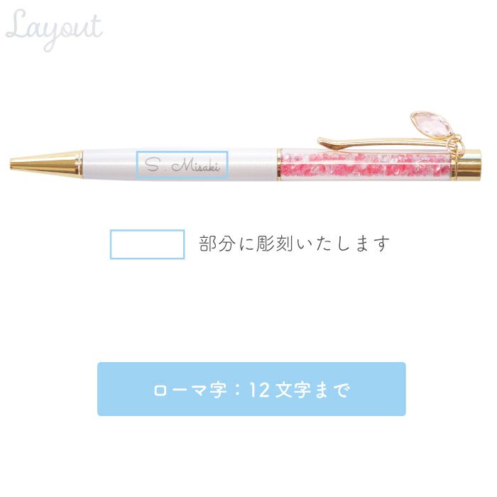 他の画像を見る クリスタルボールペン0.7mm記念品 ¥ 3,980 税込 クリスタルをあしらった上質なボールペンは、記念品やノベルティとして高い評価をいただいております。 白地に映える名入れ加工が可能で、企業名や法人名、団体名はもちろん、社章やロゴの刻印にも対応いたします。 上品な輝きを放つデザインは、周年記念や表彰、式典での記念品としてご利用いただくのに最適です。 滑らかな書き心地を実現する0.7mm黒インク芯を採用し、長くお使いいただけるよう替芯も付属しています。 また、熨斗・ラッピング・手提げ袋のご用意が可能なため、贈呈シーンでも安心してご利用いただけます。 プレゼントにぴったりなパッケージと選べるメッセージカードにより、受け取る方の心に残る特別な一本となります。 詳細を見る お気に入りに登録する