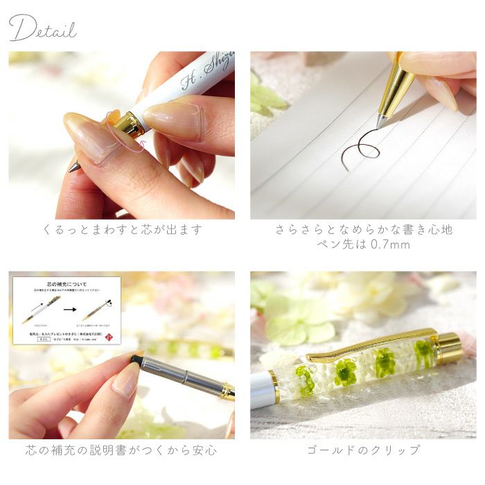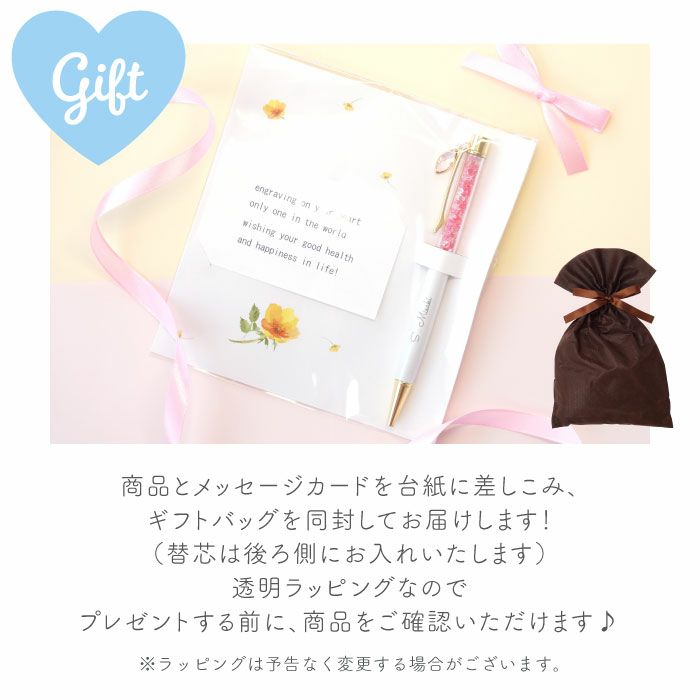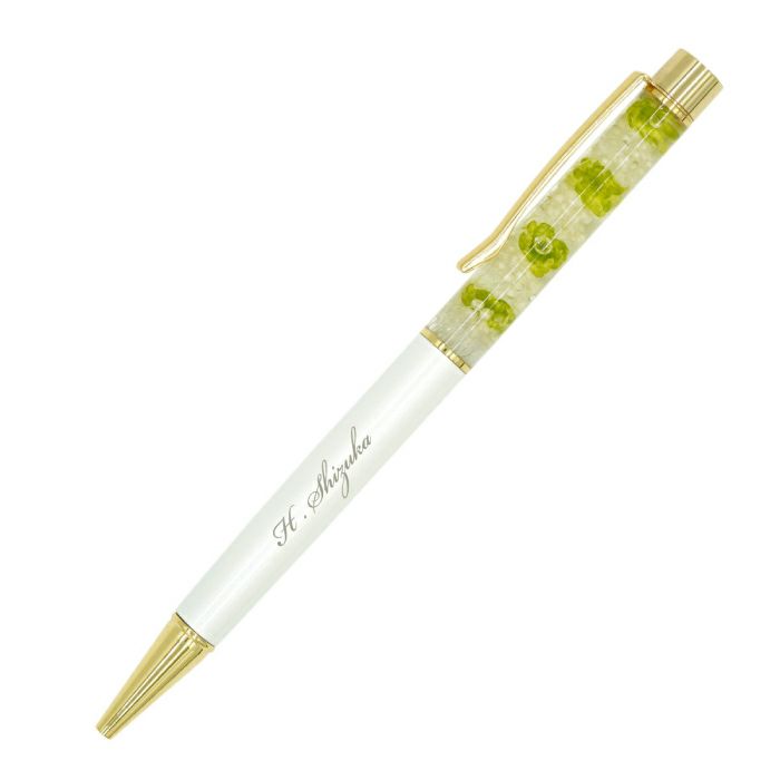 他の画像を見る ハーバリウムボールペンフラワー ¥ 3,300 税込 華やかなフラワーデザインを閉じ込めたハーバリウムボールペンは、上品で特別感のある記念品として人気を集めています。 白地に映える名入れ加工が可能で、企業名や法人名、団体名、さらには社章やロゴの刻印にも対応可能です。 周年記念や表彰、卒業記念品、イベントのノベルティなど、幅広い法人需要にお応えします。 ペン先は0.7mmの黒インクを採用し、滑らかな書き心地を実現しています。 さらに替芯付きのため長期利用にも適しており、実用性とデザイン性を兼ね備えています。 プリザーブドフラワーやドライフラワーを使用した華やかな装飾は、贈られた方の印象に強く残る逸品です。 熨斗・ラッピング・手提げ袋のご用意も可能で、贈答品としてそのままお渡しいただけます。 詳細を見る お気に入りに登録する