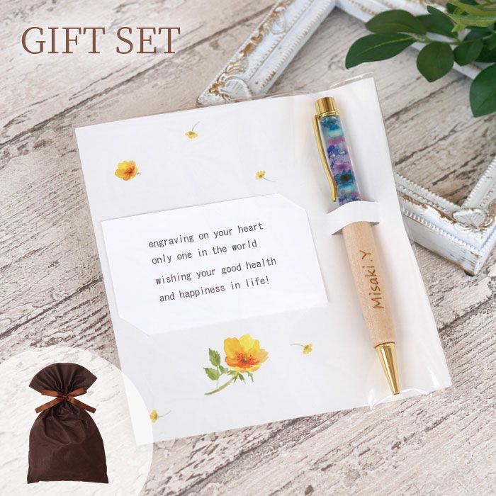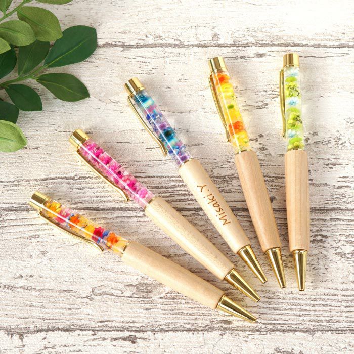 他の画像を見る 木製ハーバリウムペン ¥ 3,980 税込 木のぬくもりと華やかな彩りを兼ね備えた木製ハーバリウムペンは、上質さと特別感を兼ね備えた記念品です。 レーザー彫刻による名入れ加工が可能で、企業名や法人名、団体名、社章やロゴを美しく刻印することができます。 周年記念や表彰式、卒業記念、イベントでの贈答品など、多様な法人需要に対応できる一本です。 0.7mmのペン先はなめらかな書き心地を実現し、長時間使用しても疲れにくい仕様です。 また、替芯付きで実用性も高く、長期にわたってご利用いただけます。 木材と花々を組み合わせたハーバリウムのデザインは、受け取る方の手元を華やかに演出し、印象に残る贈り物となります。 さらに熨斗・ラッピング・手提げ袋もご用意できるため、そのまま記念品やノベルティとして贈呈可能です。 詳細を見る お気に入りに登録する