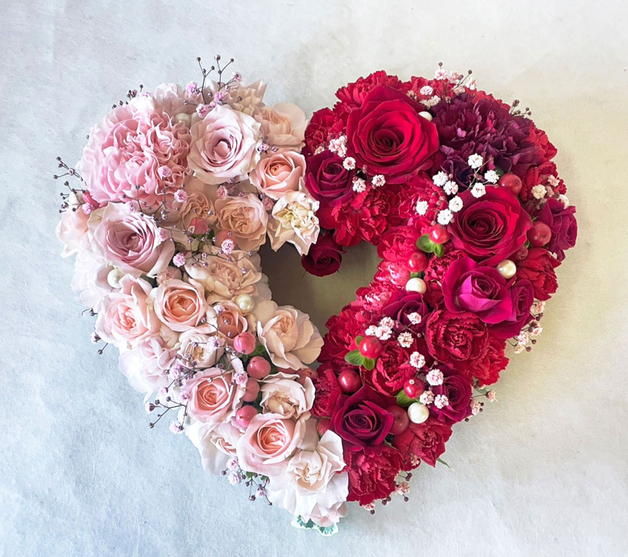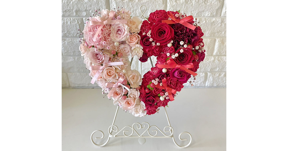 『Congratulation』をカスタマイズして淡いピンクと赤色でバースデーフラワーをお作りいたしました。